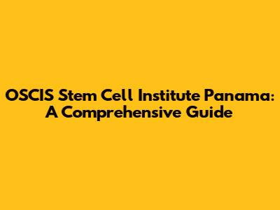 OSCIS Stem Cell Institute: A Panama Guide