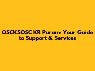 OSCKSOSC KR Puram: Your Guide To Support & Services