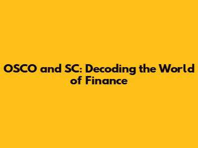 OSCO And SC: Decoding The World Of Finance