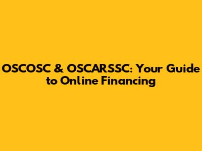 OSCOSC & OSCARSSC: Your Guide To Online Financing