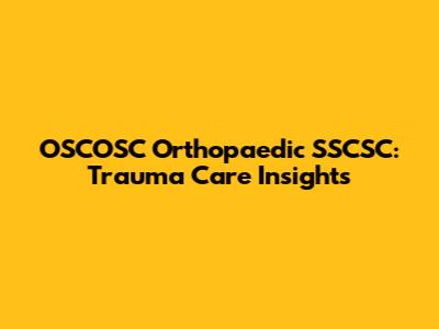 OSCOSC Orthopaedic SSCSC: Trauma Care Insights