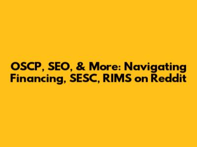 Let's dive into the world of OSCP, SEO, SESC, RIMS, and how Reddit plays a role in understanding these topics, especially when it comes to financing. This article aims to provide a comprehensive overview, making it easier for you guys to navigate these complex areas. We'll explore what each term means, how they connect, and where you can find valuable information and discussions on Reddit.