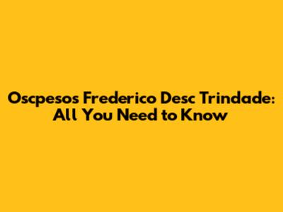 Oscpesos Frederico Desc Trindade: All You Need To Know
