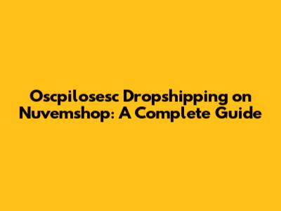 Oscpilosesc Dropshipping On Nuvemshop: A Complete Guide