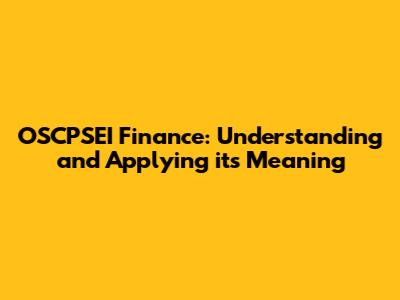 OSCPSEI Finance: Understanding And Applying Its Meaning