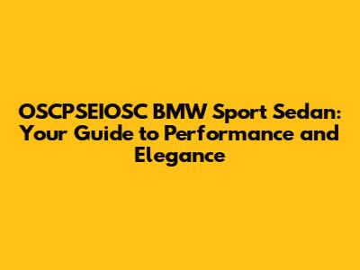 Unveiling the OSCPSEIOSC BMW Sport Sedan: What Makes It Special?