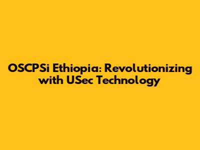 OSCPSi Ethiopia: Revolutionizing With USec Technology
