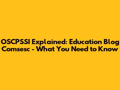 OSCPSSI Explained: Education Blog Comsesc - What You Need To Know