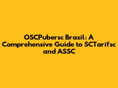 OSCPubersc Brasil: A Comprehensive Guide To SCTarifsc And ASSC