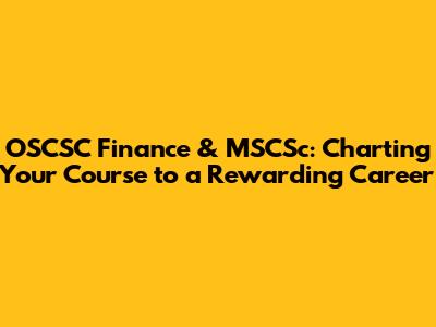 OSCSC Finance & MSCSc: Your Career Map
