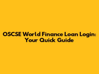 OSCSE World Finance Loan Login: Your Quick Guide