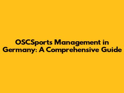 OSCSports Management In Germany: A Comprehensive Guide