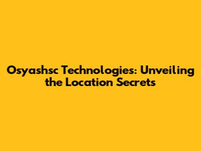 Osyashsc Technologies: Unveiling The Location Secrets
