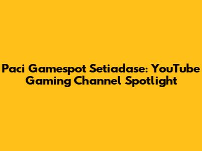 Paci Gamespot Setiadase: YouTube Gaming Channel Spotlight
