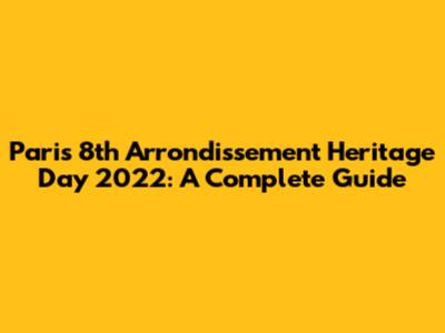 Paris 8th Arrondissement Heritage Day 2022: A Complete Guide