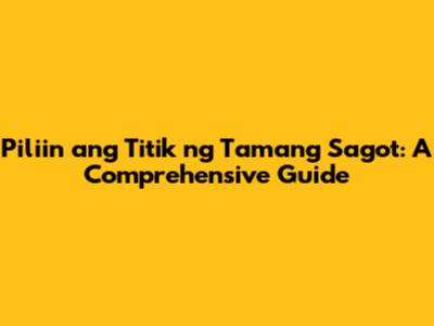 Piliin Ang Titik Ng Tamang Sagot: A Comprehensive Guide