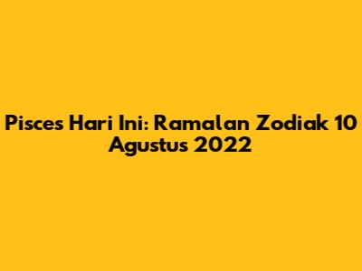 Pisces, hari ini adalah tentang merangkul perubahan dan membiarkan diri kalian mengalir. Yuk, kita intip ramalan zodiak Pisces untuk tanggal 10 Agustus 2022. Apa saja yang perlu kalian perhatikan dalam hal cinta, karir, keuangan, dan kesehatan? Mari kita bedah bersama-sama!
