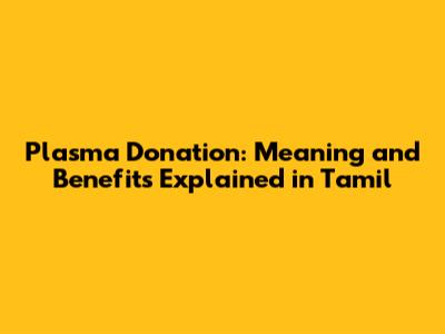Plasma Donation: Meaning in Tamil