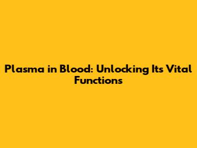 Plasma In Blood: Unlocking Its Vital Functions