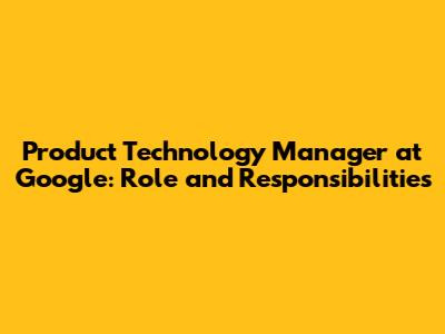 Product Technology Manager At Google: Role And Responsibilities