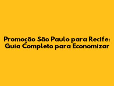 Promoção São Paulo Para Recife: Guia Completo Para Economizar