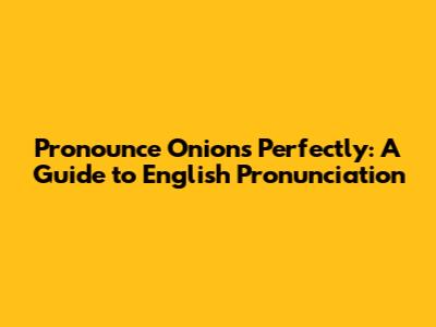 Pronounce Onions Perfectly: A Guide To English Pronunciation