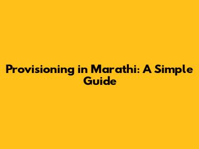 Provisioning In Marathi: A Simple Guide