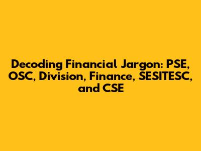 Navigating the world of finance can feel like deciphering a secret code. All those acronyms and specialized terms can leave you scratching your head. In this article, we're breaking down some common financial abbreviations: PSE, OSC, Division, Finance, SESITESC, and CSE. Consider this your cheat sheet to understanding these key terms. We will explore each term, providing clear definitions, real-world examples, and insights into their importance. Whether you're a seasoned investor or just starting to dip your toes into the financial waters, this guide will equip you with the knowledge you need to confidently navigate the financial landscape.