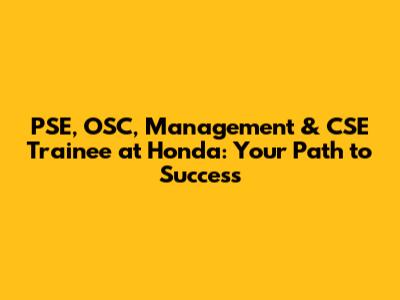 PSE, OSC, Management & CSE Trainee At Honda: A Comprehensive Guide