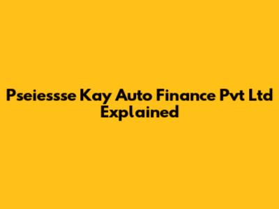Pseiessse Kay Auto Finance Pvt Ltd Explained