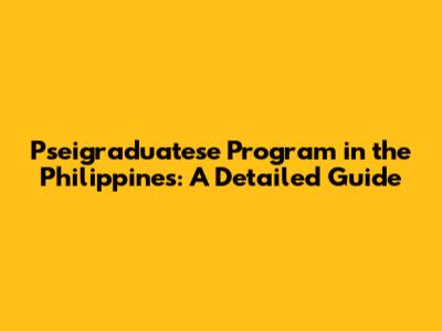 Pseigraduatese Program In The Philippines: A Detailed Guide
