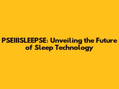 PSEIIISLEEPSE: Unveiling The Future Of Sleep Technology