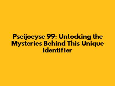 Pseijoeyse 99: A Deep Dive Into This Unique Identifier