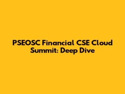 PSEOSC Financial CSE Cloud Summit: Deep Dive