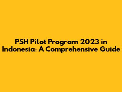 PSH Pilot Program 2023 In Indonesia: Everything You Need To Know