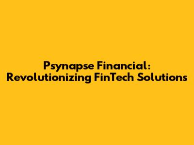 Psynapse Financial: Revolutionizing FinTech Solutions