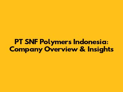 PT SNF Polymers Indonesia: Company Overview & Insights