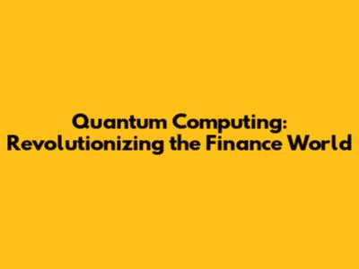 Quantum Computing: Revolutionizing The Finance World