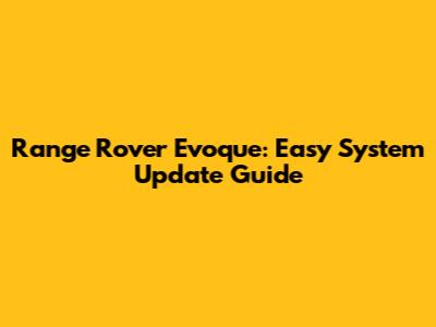 Range Rover Evoque: Easy System Update Guide