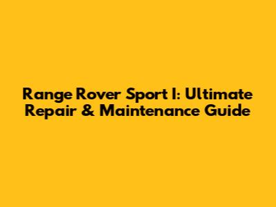 Range Rover Sport I: Ultimate Repair & Maintenance