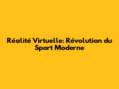 Réalité Virtuelle: Révolution Du Sport Moderne