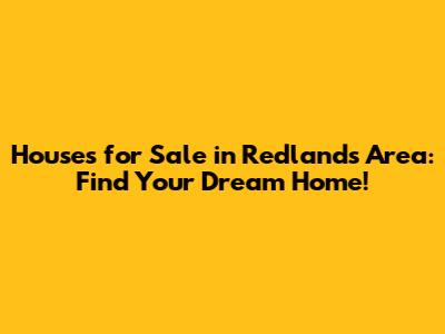 Redlands CA Homes For Sale: Find Your Dream House!
