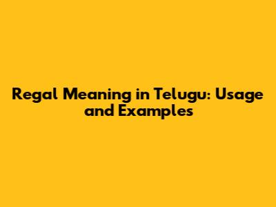 Regal Meaning In Telugu: Usage And Examples
