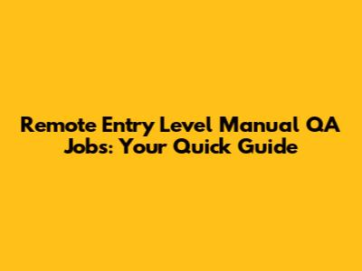 Remote Entry Level Manual QA Jobs: Your Quick Guide