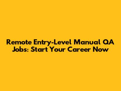 Remote Entry-Level Manual QA Jobs: Start Your Career Now