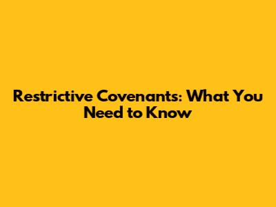 Restrictive Covenants: What You Need To Know