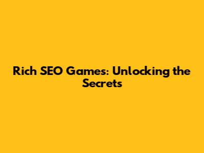Rich SEO Games: Unlocking The Secrets