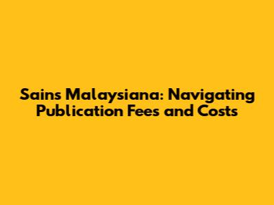 Sains Malaysiana: Your Guide To Publication Fees And Costs