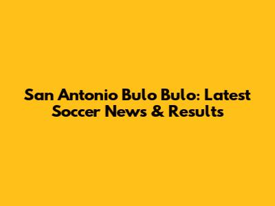 San Antonio Bulo Bulo: Latest Soccer News & Results