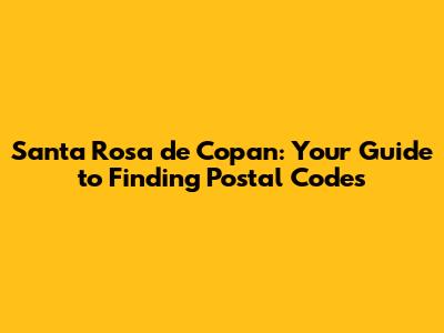 Q: What is the postal code for Santa Rosa de Copan? A: The postal code for Santa Rosa de Copan can vary depending on the specific neighborhood or zone. The best way to find the correct code is to ask the recipient, use an online search, or consult the Honduran postal service website.